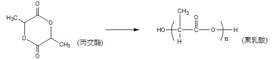 (2)丙交酯開(kāi)環(huán)聚合獲得聚丙交酯,即聚乳酸: